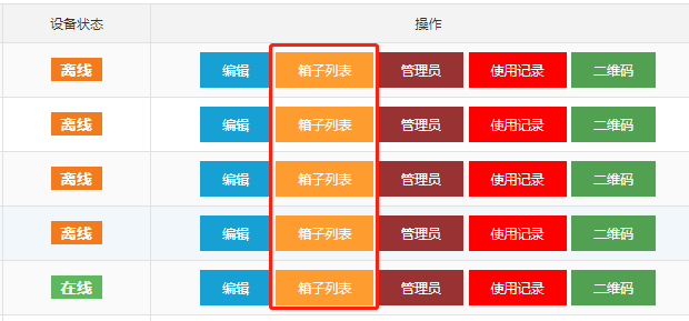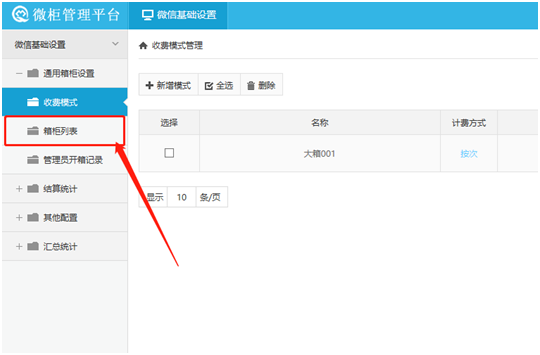 收費模式設置完成之后進到箱子列表(步驟參考“第三步:應用收費模式”),