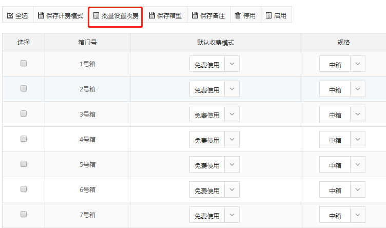 3. 可以看到當前箱門信息,也可以設置默認收費模式、規(guī)格等功能