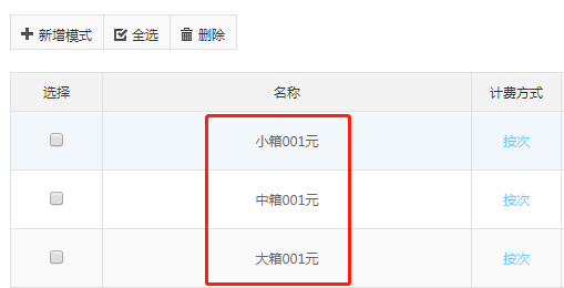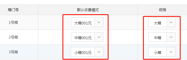 這里我們以設置的三種收費模式(分別為“大箱 001”、“中箱 001”、“小箱