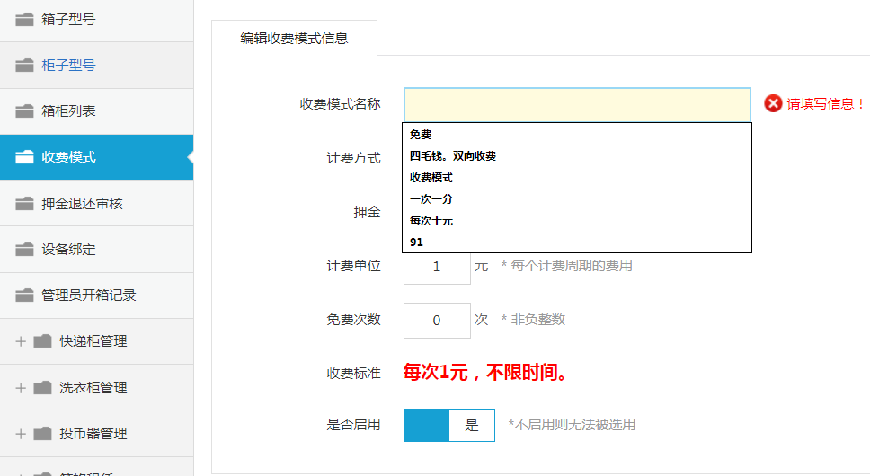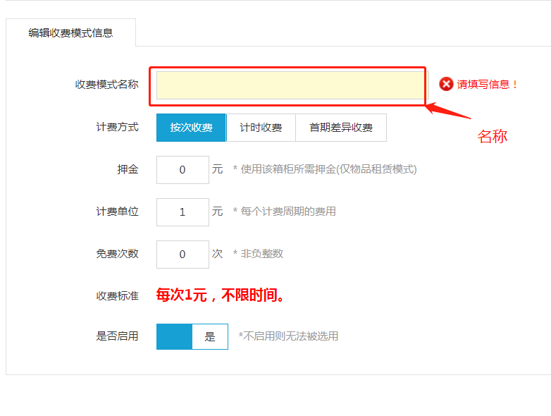 1) 我們可以根據(jù)自己需求對收費模式命名、設置計費方式(按次收費、計